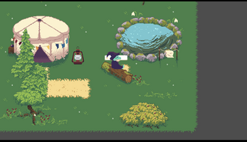 All assets were drawn and animated by me in Aseprite, I also recorded the banjo tune in the yurt.